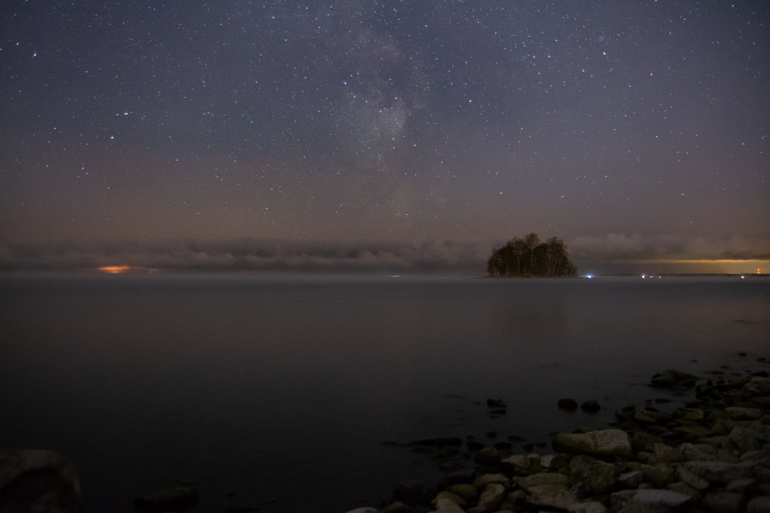 Järvimaisema, hiljaisuus ja pehmeä valo.